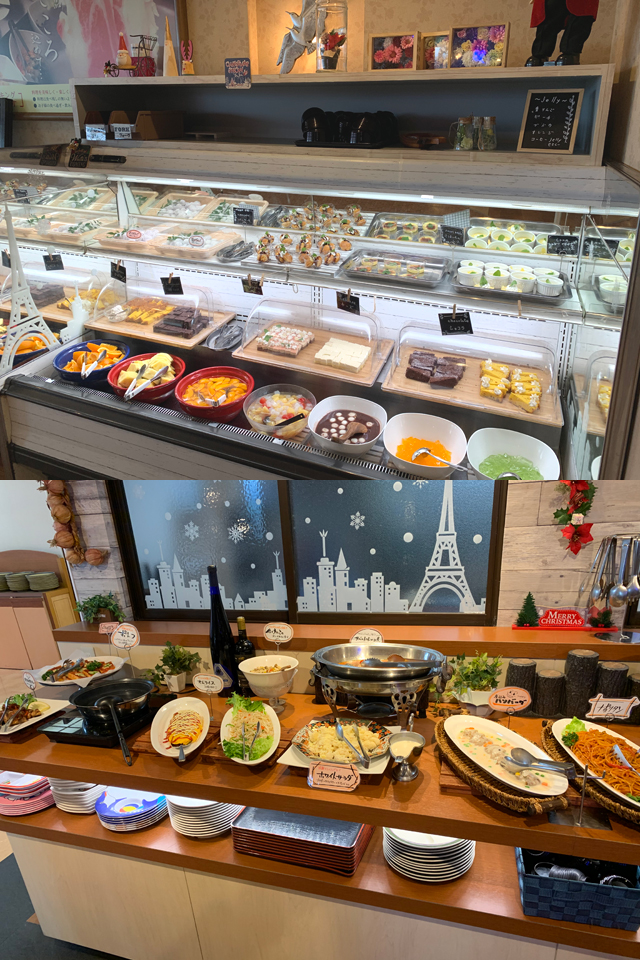 お客様に快適な空間を提供する為に、お肉コーナー、ブュッフェコーナーを広くし、より見やすく、よりお料理を選びやすくしました。また、デザートコーナーも豊富になりました。